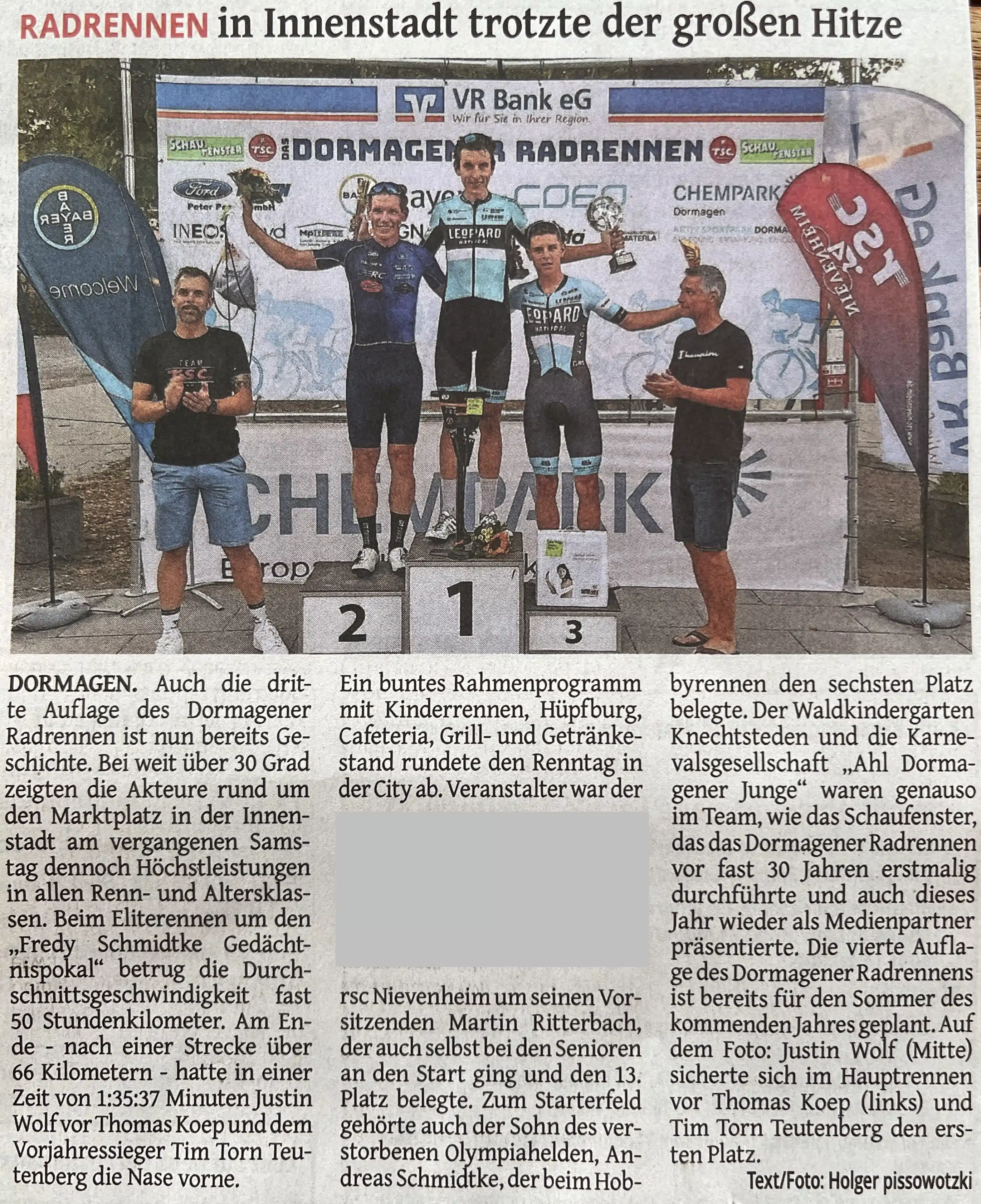 Dritte Auflage des Dormagener Radrennen - Bericht im Schaufenster vom 22.08.2022